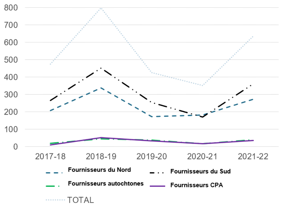 - Figure 10 : Nombre total de fournisseurs de 2017-2018 à 2021-2022