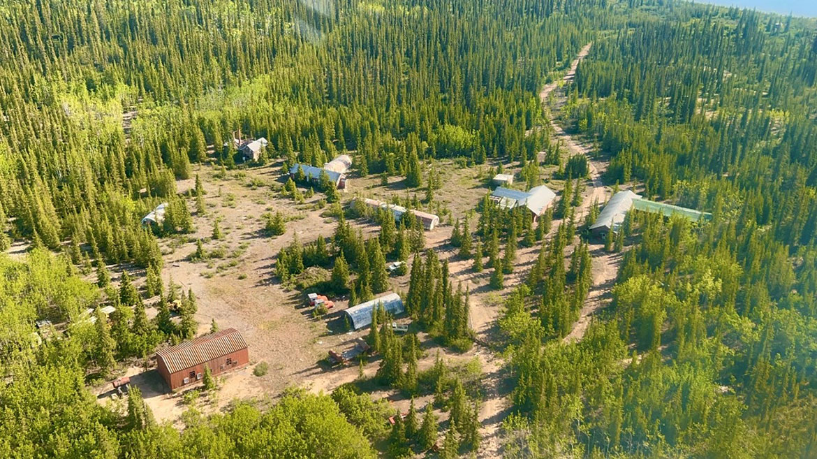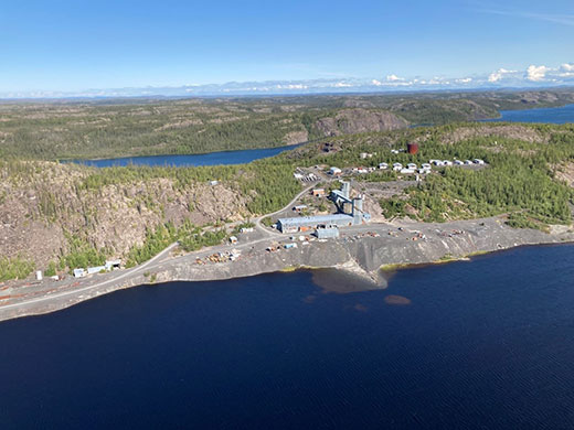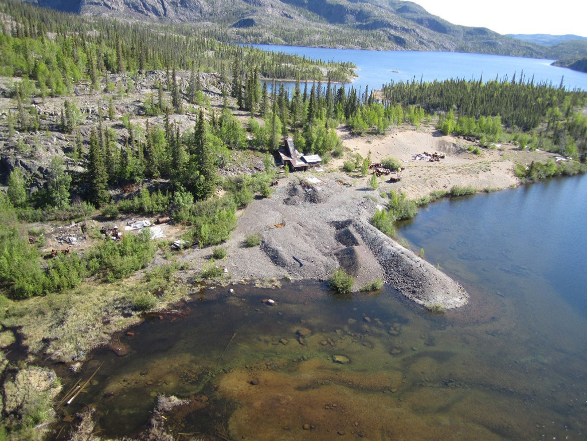 - L'ancien camp se trouve sur la rive du lac Contact, et la mine est située sur la crête au-dessus, avec un accès limité.