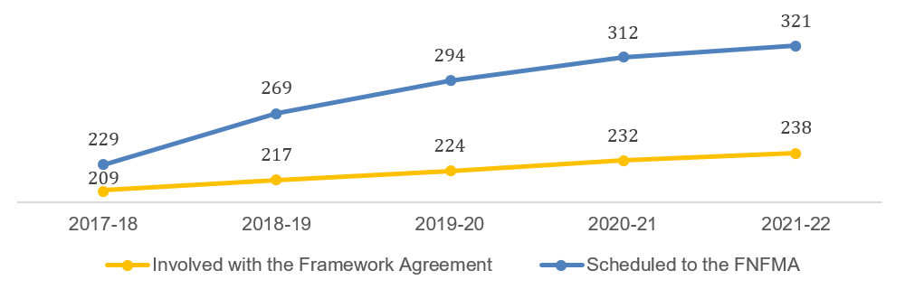 Several initiatives implemented during the evaluation period have strengthened the legislative framework related to land management. First amended in 2018 to include provisions related to the addition of reserve land for First Nations with a land code in force, the FNLMA was repealed and replaced in December 2022 by the Framework Agreement on First Nation Land Management Act (FAFNLMA). This new legislation responded to a long-standing objective on the part of signatory First Nations and the LAB to establish the Framework Agreement as the foundational document when it comes to land management. The FAFNLMA confirms that the Framework Agreement has the force of law, is binding, and that it prevails in the event of any inconsistency or conflict between other provisions in the Act and the Framework Agreement.