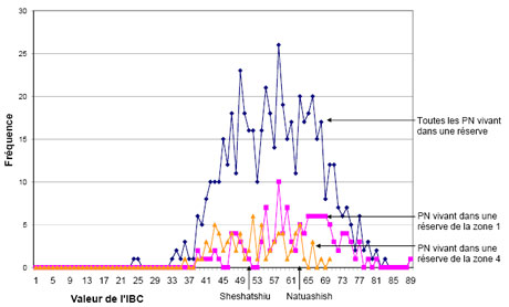 - Les différences en 2006 ne sont pas significatives entre la moyenne des Premières nations des réserves et Sheshatshiu (Division 10, subdivision C) [z = -0,8132; p = 0,4180] ou Natuashish [z = 1,372; p = 0,1706].(retourner au paragraphe source)