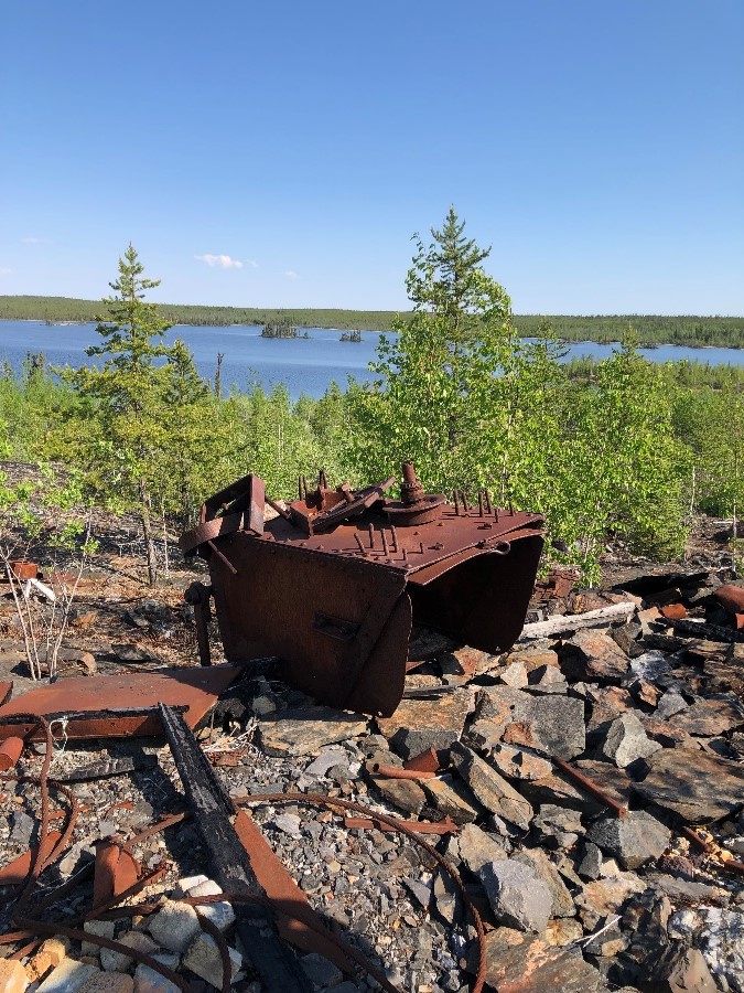 Texte accessible pour le Chariot rouillé et débris sur le site principal de la mine Thompson Lundmark
